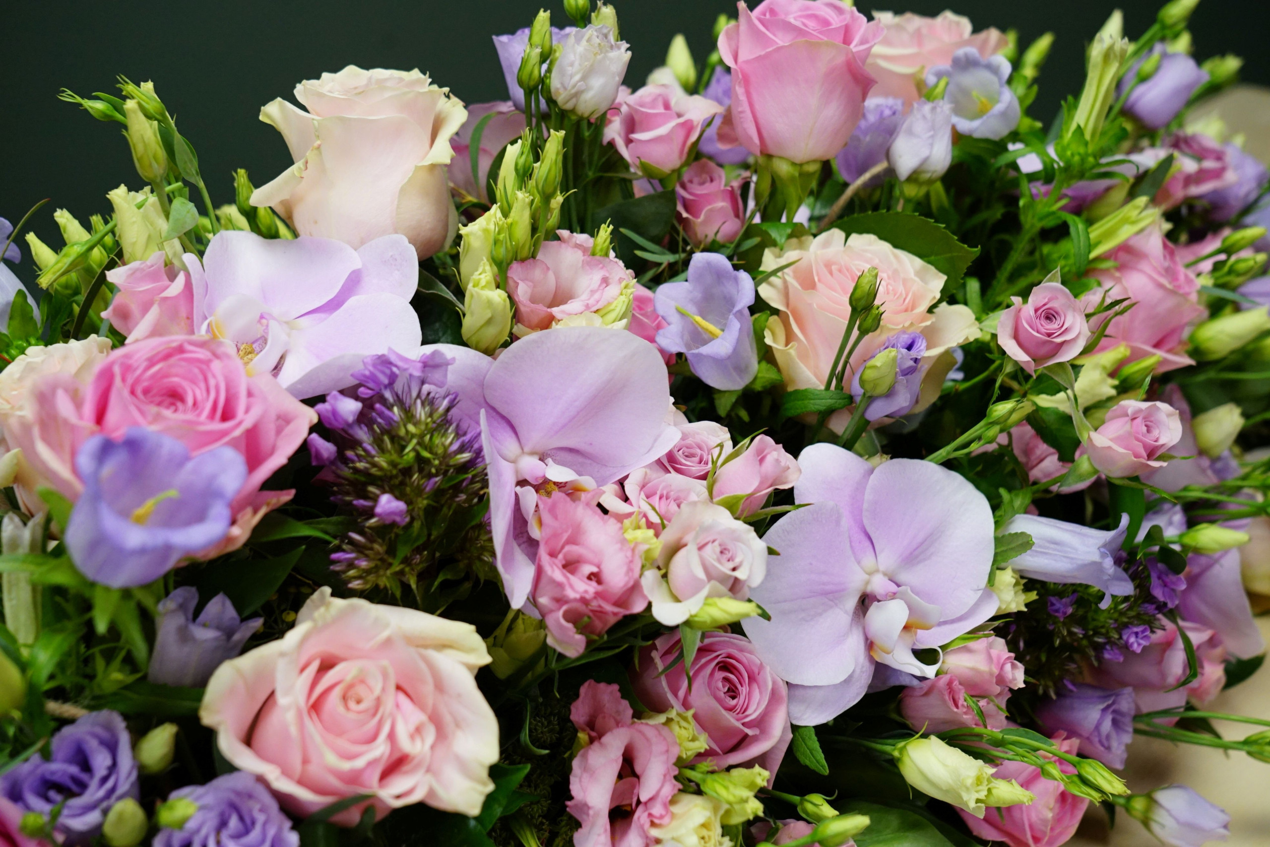 De ‘kleine tegenstelling’ tussen orchideeën, rozen en eustoma’s zou je kunnen zien als spannend…